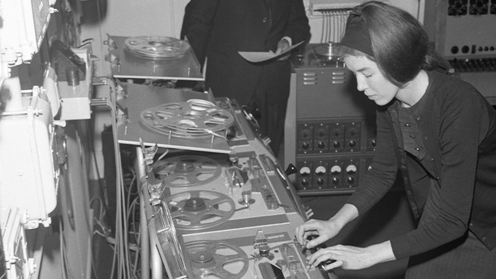 The BBC Radiophonic Workshop was the BBC’s sound effects studio founded by Daphne Oram and Desmond Briscoe in 1958 and is renowned for creating the Doctor Who theme composed by Delia Derbyshire by recording and manipulating sounds on quarter-inch mono tape. The Workshop’s equipment consisted mainly of old tape recorders and a few pieces of test equipment that could make noises. The tape recorders could be used for echo and reverb by using an empty room downstairs with a microphone at one end and a speaker at the other. The sound of the tardis was made in 1963 from an old piano, a front door key lots of reverse feedback and an oscillator known as the wobbulator.